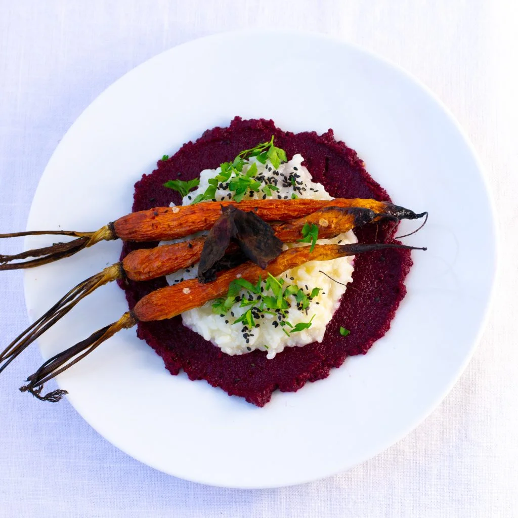 I put the pesto on the plate first, popped the rice into the centre then piled on the purple sprouting and courgette, both of which are easy to grow.