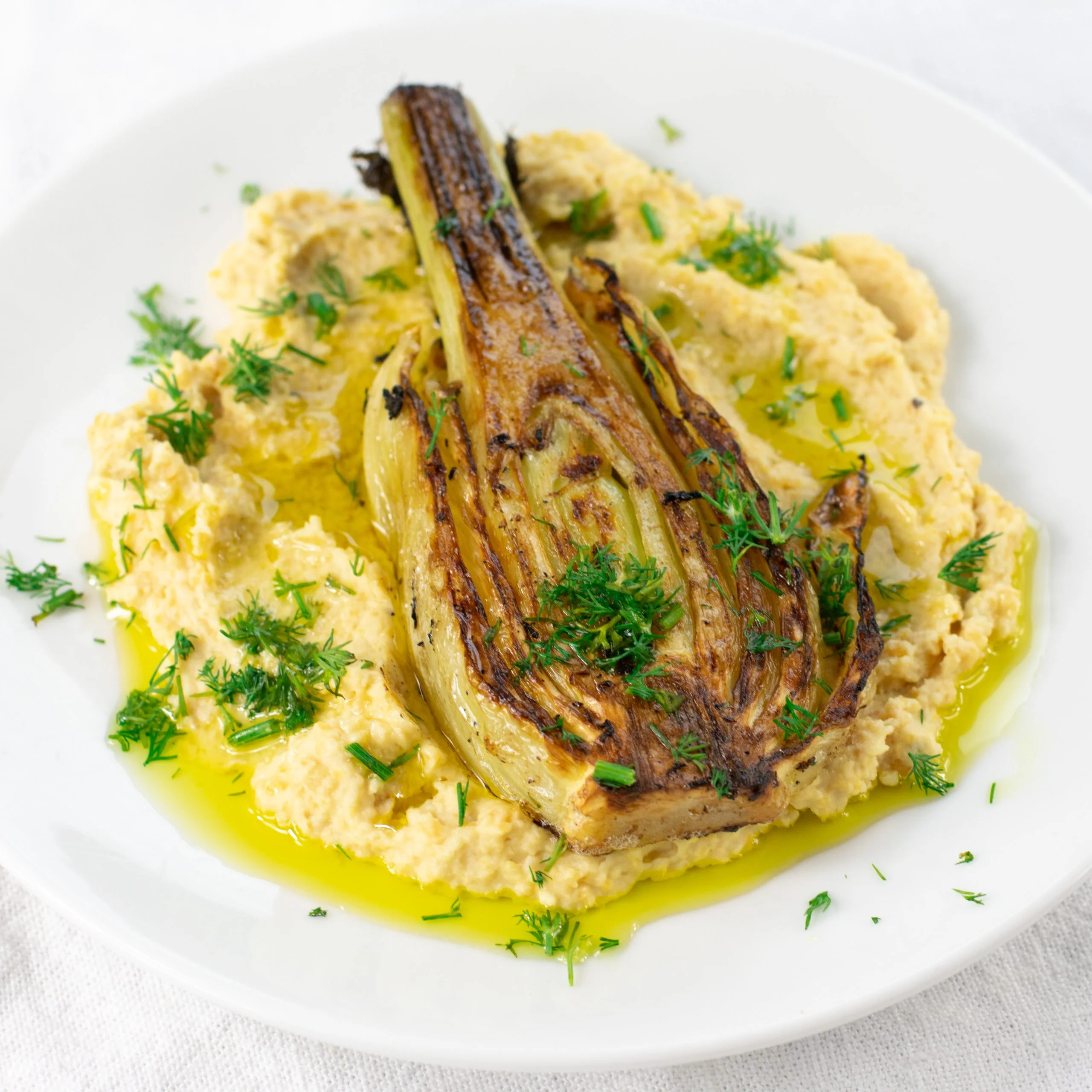 I sauted the fennel in ghee, garlic and ginger root. The hummus is the normal recipe (chickpeas, light tahini, fresh lemon juice, rock salt, and olive oil), with cayenne pepper added to it.